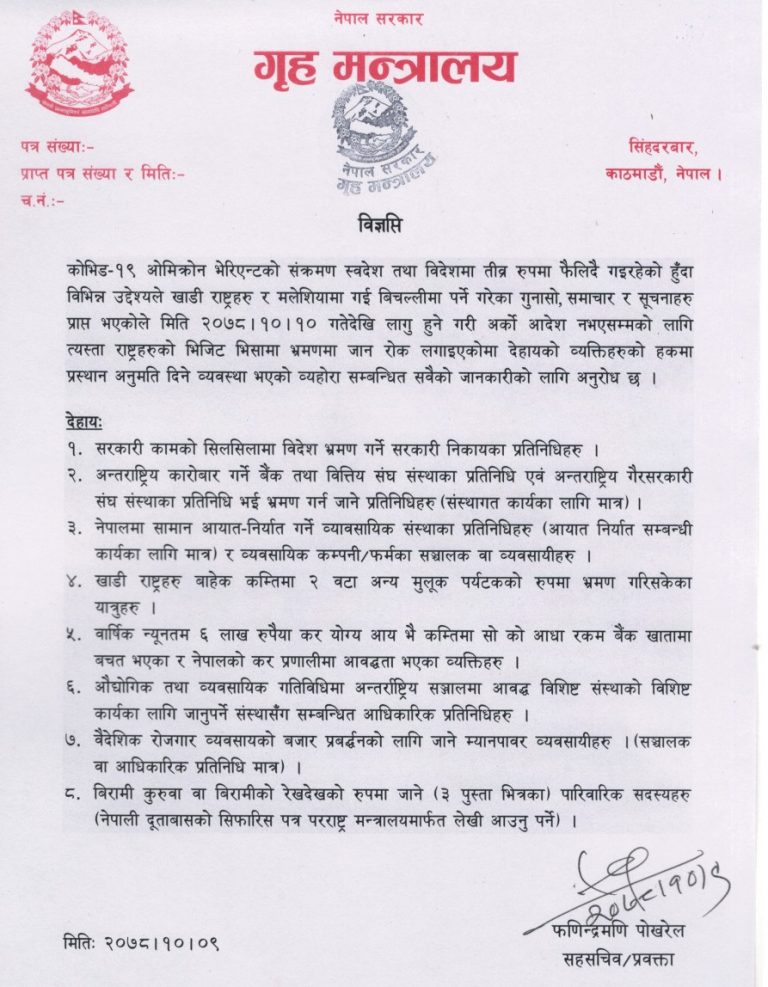 सरकारले अब तोकिएका संस्थागत प्रतिनिधि र व्यक्तिहरूलाई मात्र खाडी देश र मलेसिया भ्रमणका लागि प्रस्थान अनुमति दिनेछ ।