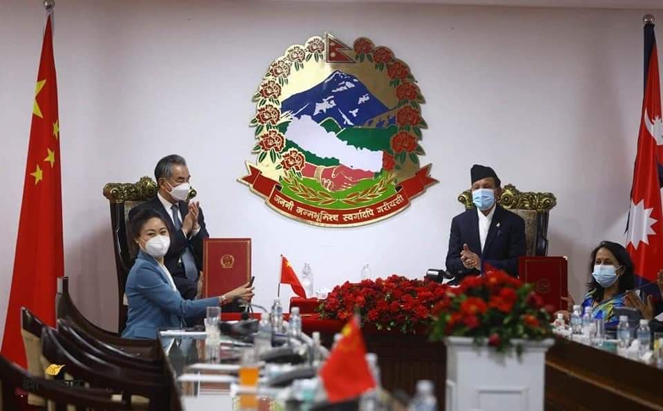 परराष्ट्रमन्त्री डा नारायण खड्का र चीनको राज्यपरिषद् सदस्य एवं परराष्ट्रमन्त्री वाङ यीबीच नेपाल–चीन सम्बन्धका समग्र पक्षमा छलफल भएको छ । प्रधानमन्त्री तथा मन्त्रिपरिषद्को कार्यालयमा केहीबेरअघि भएको भेटवार्तामा पारस्परिक हित र साझा चासोका सबै पक्षमा विचार विमर्श भएको हो ।