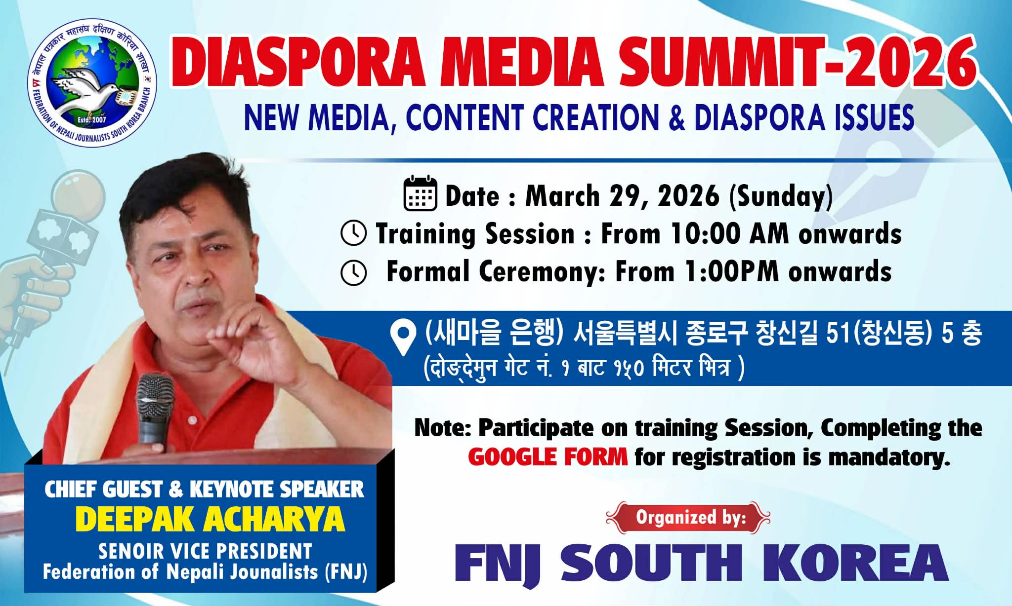 सिओल दक्षिण कोरिया- नेपाली जनसम्पर्क समिति दक्षिण कोरियाले बृहत अन्तर्क्रिया तथा प्रशिक्षण कार्यक्रम जुलाई २८ मा गर्ने भएको छ।