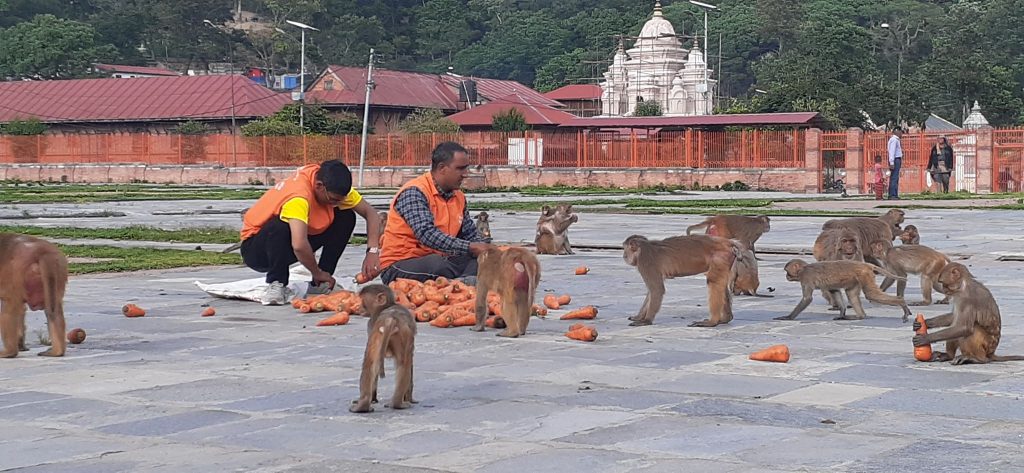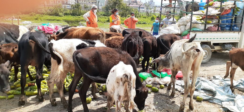 उक्त लकडाउनकाे सुरुदेखिनै विश्व हिन्दु युवा संघ अन्तर्राष्ट्रीय समिती लगाएत अन्य सबै सहयाेगिहरुले गाईगोरु,नन्दी,बाँदर,परेवा,कुकुरहरुलाई हरियो तरकारी,पराल,केरा,गाँजर,कोशा,गँहु, मकै,बिरियानी वितरण अादि दैनिक रुपमा खुवाउँदै आईरहेको छ। याे सहयोग कार्य काठमाडौंका विभिन्न ठाउँ र पाशुपात क्षेत्रमा वितरण भैरहेकाे छ । हरेक दिन तीन चरणमा हुने कार्य अहिले पाशुपत क्षेत्र मात्र नभएर पशुपतिनाथ मन्दिर भित्र रहेका गाईहरु,सडकवाट उठाईएको नन्दी साढेहरु र राजधानीका विभिन्न स्थानहरुमा रहेका गाईगोरु एवं पशुपतिनाथ,गुहेश्वरी, भद्भकाली, मैतीदेवी,बौद्ध,स्वयम्भु,हनुमानढोका, पिटन दरवार,भक्तपुर दरवार क्षेत्रका परेवा, बाँदर, काठमाण्डौ सहित ललितपुर र भक्तपुर क्षेत्रका सामुदायिक कुकुरहरुलाई दैनिक खाना खुवाउँदै आएकाे सामाजिक धार्मिक अभियान्ताहरुले पशुपन्छीलाई मात्र नभएर लक डाउनको कारणले हरियो सागसब्जी लिन नसक्नेहरूलाई दैनिक हजारौ किलो ताजा तरकारी वितरण गर्दै अाएकाे छ ।