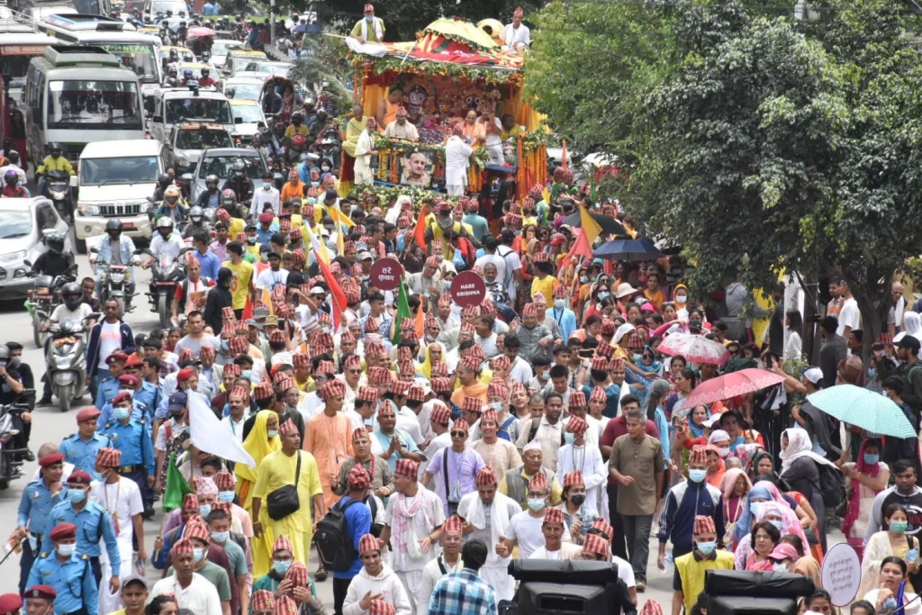 नेपाल अन्तर्राष्ट्रिय कृष्णभावनामृत सङ्घ (स्कोन नेपाल)ले आयोजना गरेको सो रथयात्रामा सरिक हुँदै राष्ट्रपति भण्डारीले प्रसाद ग्रहण गर्नुभयो । स्कोनको तर्फबाट नेपालका लागि प्रतिनिधि पत्रिदासले विश्वमा शान्ति कायम गर्न यात्राको आयोजना गरिएको बताउनुभयो ।