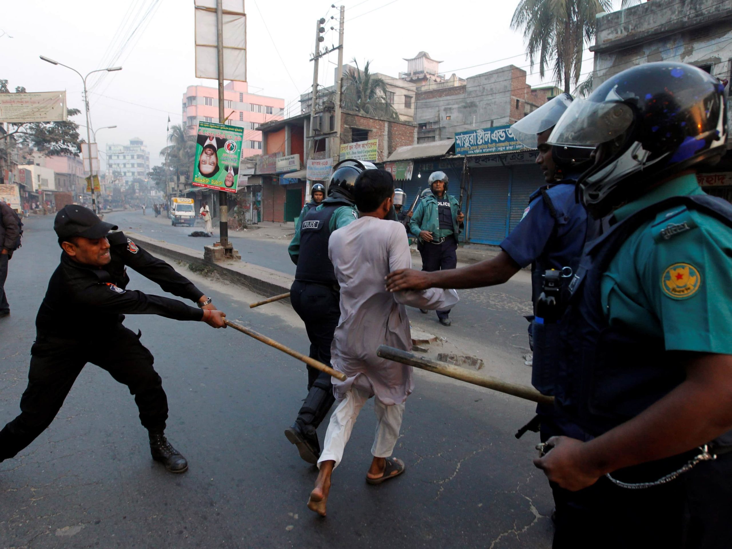 सहरका प्रमुख नाकाहरूमा सवारी आवागमन अवरुद्ध गर्न बिहान भेला भएका हजारौँलाई हटाउन प्रहरी लागेपछि धेरै स्थानहरूमा दोहोरो झडप भएका छन् । केही प्रहरी अधिकारी घाइते भएका ढाका महानगरीय प्रहरीका प्रवक्ता फारुक अहमदले एएफपीलाई बताएका छन् । उनले स्थितिलाई नियन्त्रणमा लिने अश्रुग्याँस र रबरका गोली प्रहार गरिएको बताएका छन् । ढाका सहर वरपरका चार स्थानमा प्रदर्शनकारी र प्रहरीबीच झडप भएको छ ।
