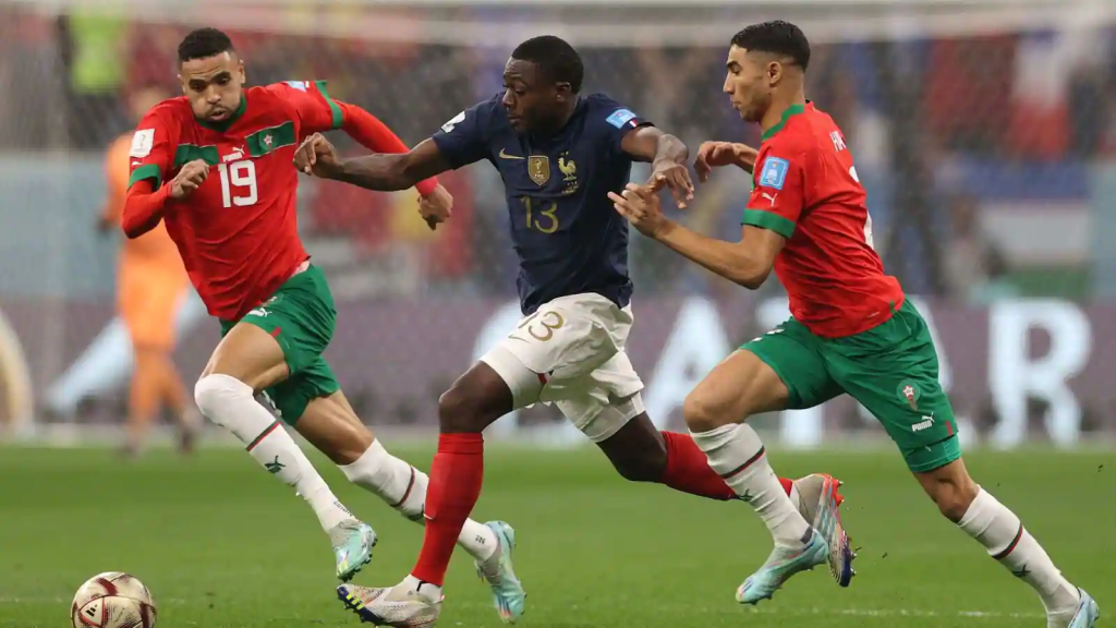 आज बिहान अल बेयत रंगशालामा भएको खेलमा फ्रान्सलाई खेलको चौथो मिनेटमै फरवार्ड हर्नान्डेजले रिबाउन्डबाट आएको बललाई सुन्दर गोल गर्दै अग्रता दिलाएका थिए । खेलअघि आफ्नो मुख्य डिफेन्डर नाएफ अगुएर्डको साथ गुमाएको मोरक्कोले पहिलो हाफको २० मिनेट नबित्दै आफ्नो कप्तान रोमन साइसको साथ पनि पाउन सकेन ।